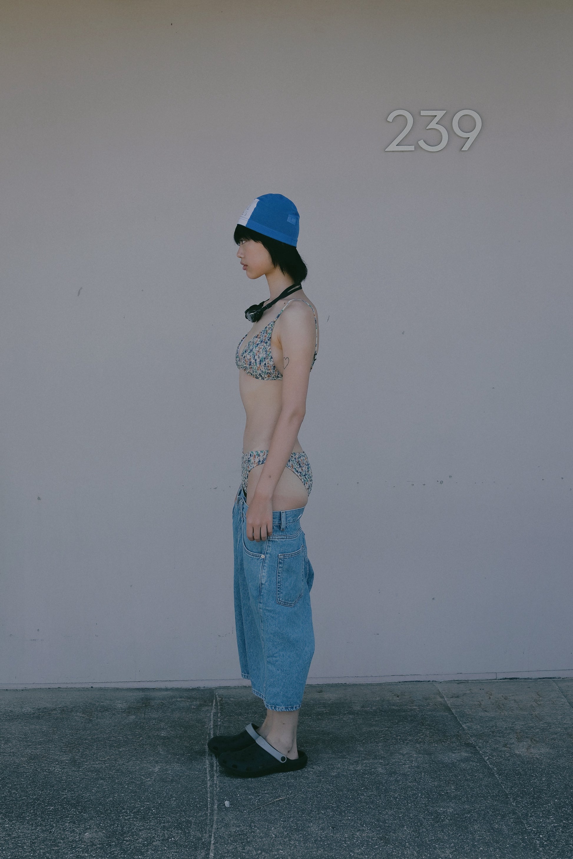 Shirring Flower Triangle Top