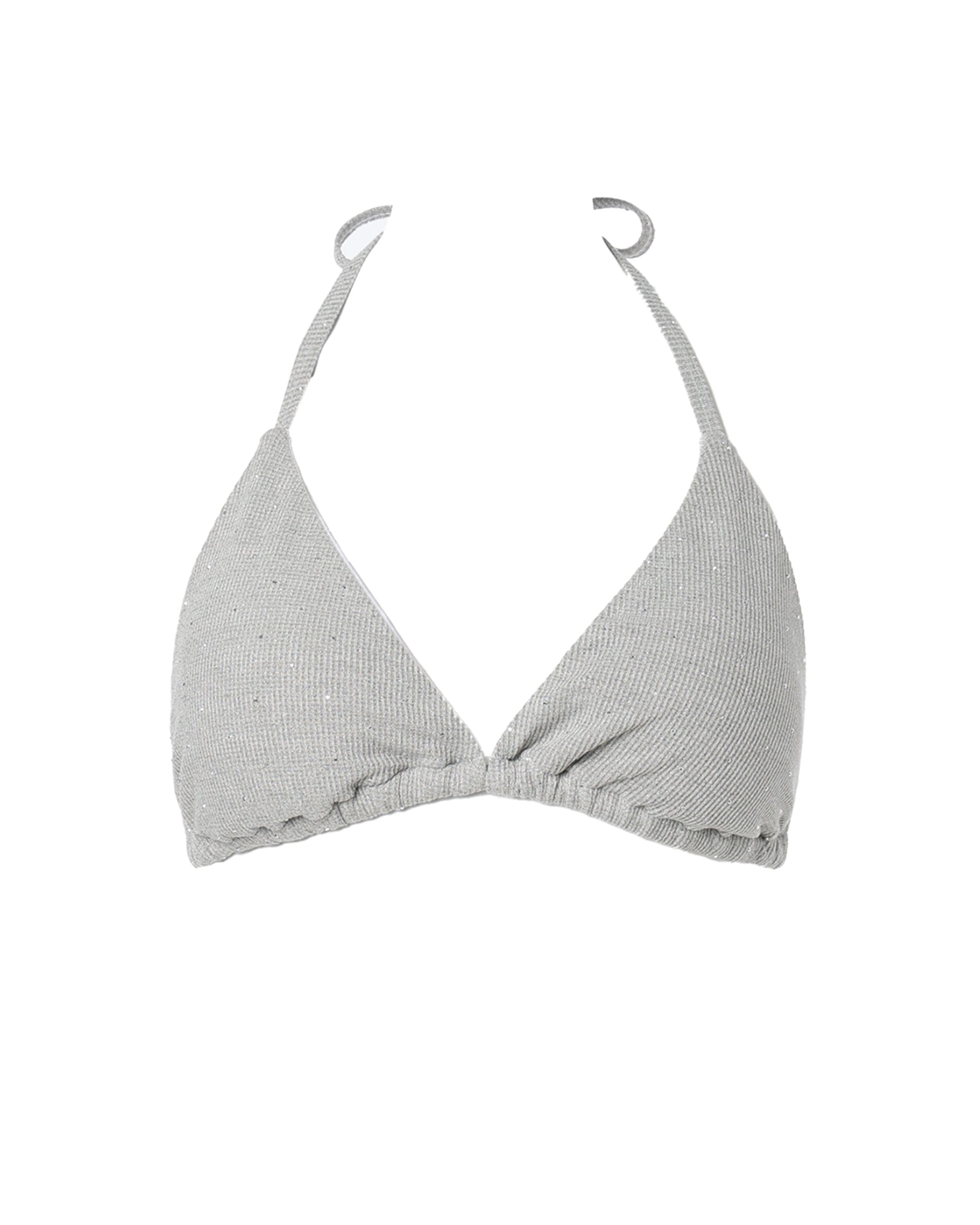 ストーンをあしらった、ベロア素材のトライアングルビキニ。