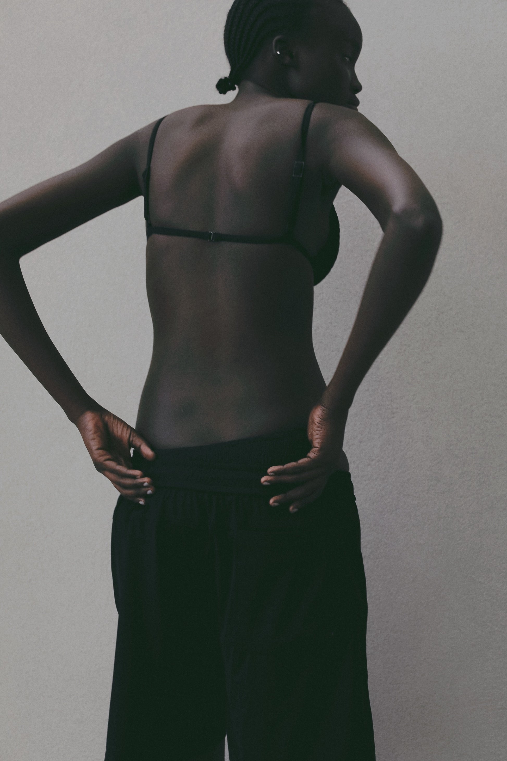 ミニマルな三角シルエットに華奢なストラップを合わせ、甘さを抑えたバランスに仕上げました。